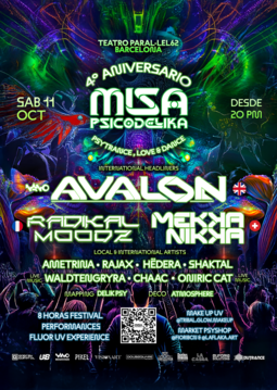 El 11 de octubre celebramos 4 años de MISA en el templo del Teatro Parallel 62. Una noche donde leyendas del psytrance mundial, live acts visionarios y la energía de nuestra comunidad se unen para vivir el ritual psicodélico más grande del año en un teatro que se transforma en un festival de 8 horas en el centro de la ciudad  Se parte de una noche histórica